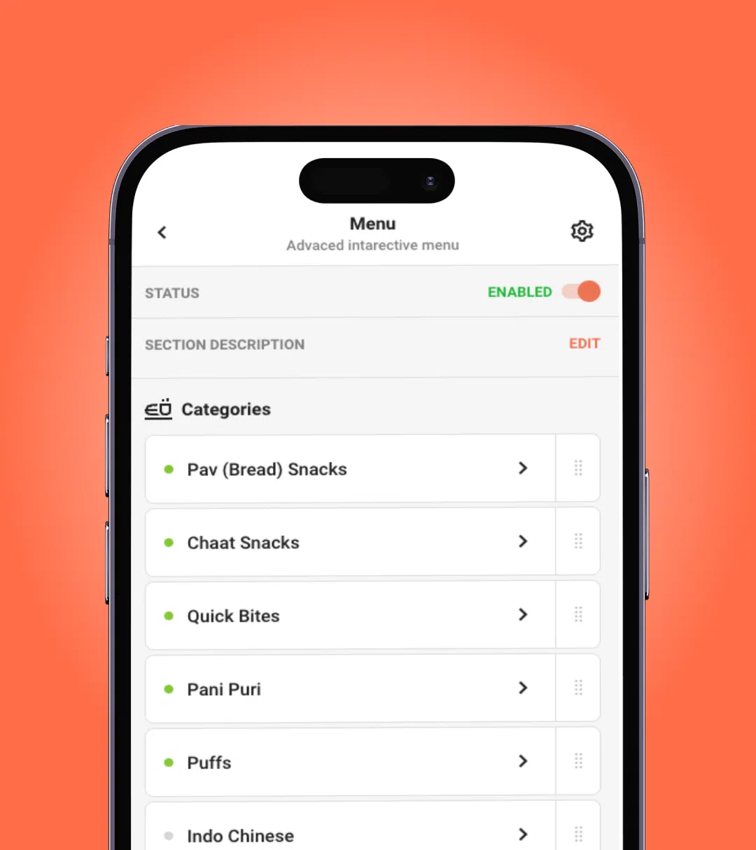After integration, the old menu in the Bolt account of the establishment is turned off. Now the menu items from Choice will be displayed here. The establishment representative can configure what should be available in the Bolt menu