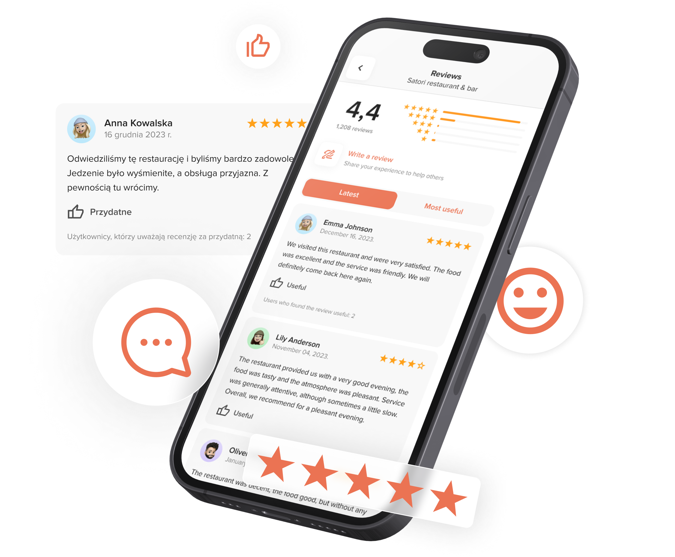Right after a completed order or delivery, customers can easily rate the service and food quality. This allows you to quickly identify areas for improvement and enhance the customer experience in real-time.